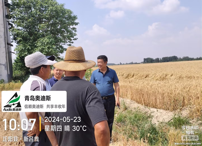 ? ? ? ?5月23日,名譽董事長早早來到河南省正陽縣的田間地頭。名譽董事長從早上7:30開始拜訪經(jīng)銷商、零售商、農(nóng)戶,并到農(nóng)戶田間地頭實際走訪查看產(chǎn)品效果,給用戶及經(jīng)銷商講解效果。在名譽董事長帶領(lǐng)下,包括客戶、業(yè)務(wù)經(jīng)理在內(nèi)的20多人前往示范地塊,針對小麥進行“栗健”產(chǎn)品的推介。炎炎烈日下,名譽董事長走向田間、躬身一線感動了所有在場人員,名譽董事長倡導(dǎo)的“做放心產(chǎn)品,讓農(nóng)戶放心”的理論,更是展示了田間初心、提振了客戶信心、堅定了營銷將士的決心,贏得了在場人員的由衷敬佩,客戶紛紛與名譽董事長合影留念。直到下午3時30分,名譽董事長匆匆進食午餐后,又馬不停蹄前往下一站。