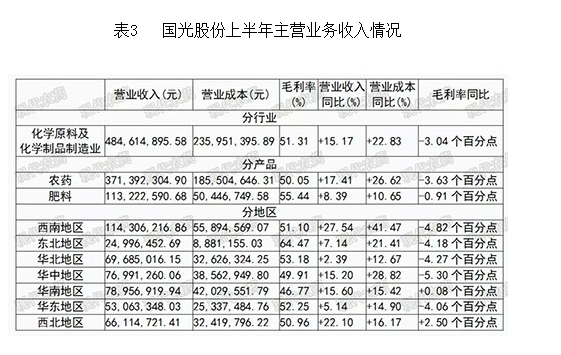 ? ? 近日,中化國際(控股)股份有限公司(股票代碼:600500;以下簡稱“中化國際”)、四川國光農(nóng)化股份有限公司(股票代碼:002749;以下簡稱“國光股份”)和聯(lián)化科技股份有限公司(股票代碼:002250;以下簡稱“聯(lián)化科技”)分別發(fā)布了2018年半年度報告。其中,國光股份實現(xiàn)上半年營業(yè)收入和凈利潤雙增長;聯(lián)化科技上半年營收和凈利潤則雙雙同比下降。