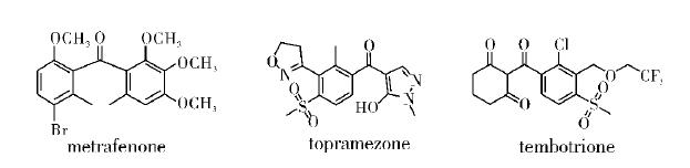 10余年前曾有人提出,在二甲芳基間以羰基為“橋”進行連接通常無農藥活性,但以后出現(xiàn)了一些以羰基為連接鍵的新農藥,其中可能有新理論,對新農藥的創(chuàng)制大有裨益。圖3為以羰基為連接鍵的新農藥品種。