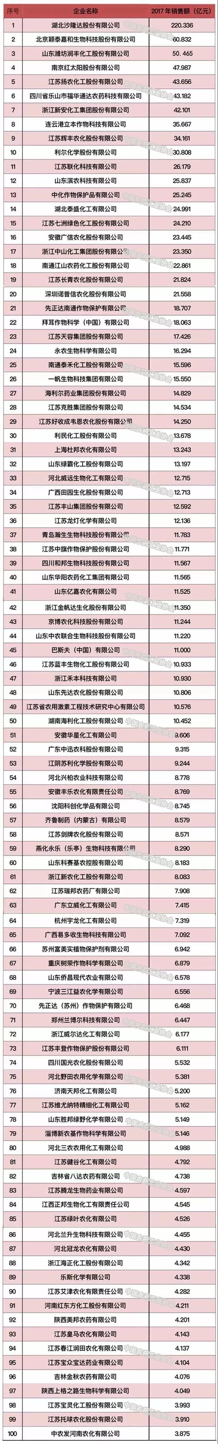 2018中國農藥行業(yè)銷售百強榜發(fā)布