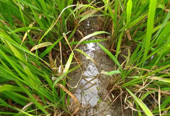 采用嘧甲防治區(qū)水稻紋枯病發(fā)生很輕,下部青綠,黃葉少。