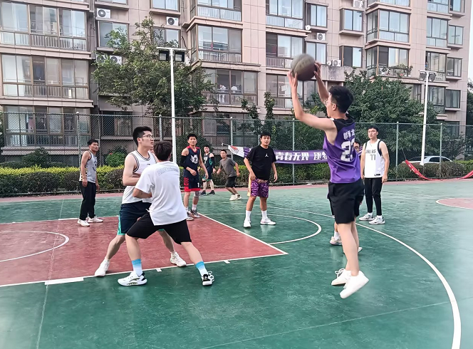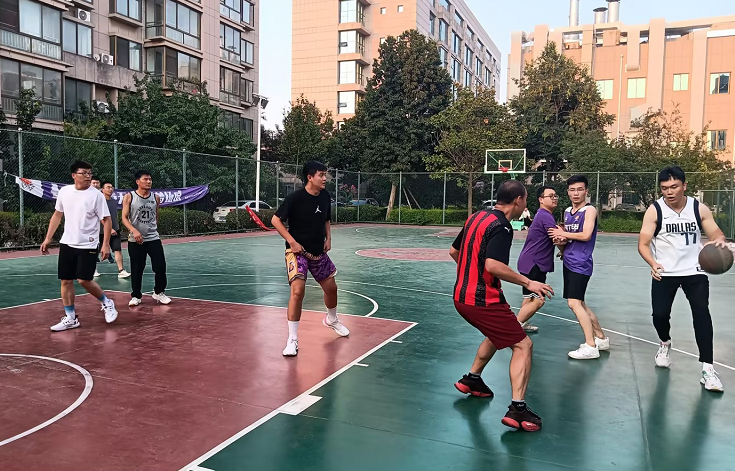 下午6時(shí)10分,集團(tuán)總部籃球場(chǎng)上人頭攢動(dòng)、熱鬧非凡。在新老員工的期盼中,楊克飛帶領(lǐng)的老員工隊(duì),郭炳龍領(lǐng)銜的新員工隊(duì),郝代帥為首的裁判員代表先后入場(chǎng)。裁判員講明比賽規(guī)則,雙方隊(duì)員握手致敬,體現(xiàn)了簡(jiǎn)單坦誠陽光的氛圍。隨著哨聲響起,雙方球員躍起爭(zhēng)球,比賽開始。賽場(chǎng)上,雙方均亮出最強(qiáng)實(shí)力,老員工配合嫻熟、積極跑位、相互掩護(hù),展示了團(tuán)結(jié)協(xié)作的風(fēng)貌;新員工快速反擊、瀟灑帶球、運(yùn)球上籃,整套動(dòng)作如行云流水一氣呵成,將頑強(qiáng)拼搏的精神展現(xiàn)得淋漓盡致。比賽中,新員工佩服老員工的沉穩(wěn)和耐力,老員工感慨新員工的倔強(qiáng)與激情,雙方你追我趕,聯(lián)合為觀眾呈現(xiàn)了精彩的籃球賽事。賽場(chǎng)外,觀賽員工為隊(duì)員們搖旗吶喊、加油鼓勁,現(xiàn)場(chǎng)氣氛愉快而又熱烈。經(jīng)過激烈比拼,最終老員工隊(duì)伍贏得了本次籃球友誼賽的勝利。