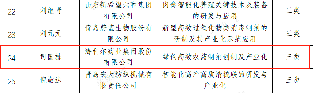 ? ? ? ?日前,青島市科技局公布了《2022年度青島產業(yè)領軍人才(團隊)擬支持名單》,經主管部門推薦、形式審查、答辯審查、現場考察等程序,全市共有55人入選,集團研發(fā)中心制劑所二室主任司國棟入選。