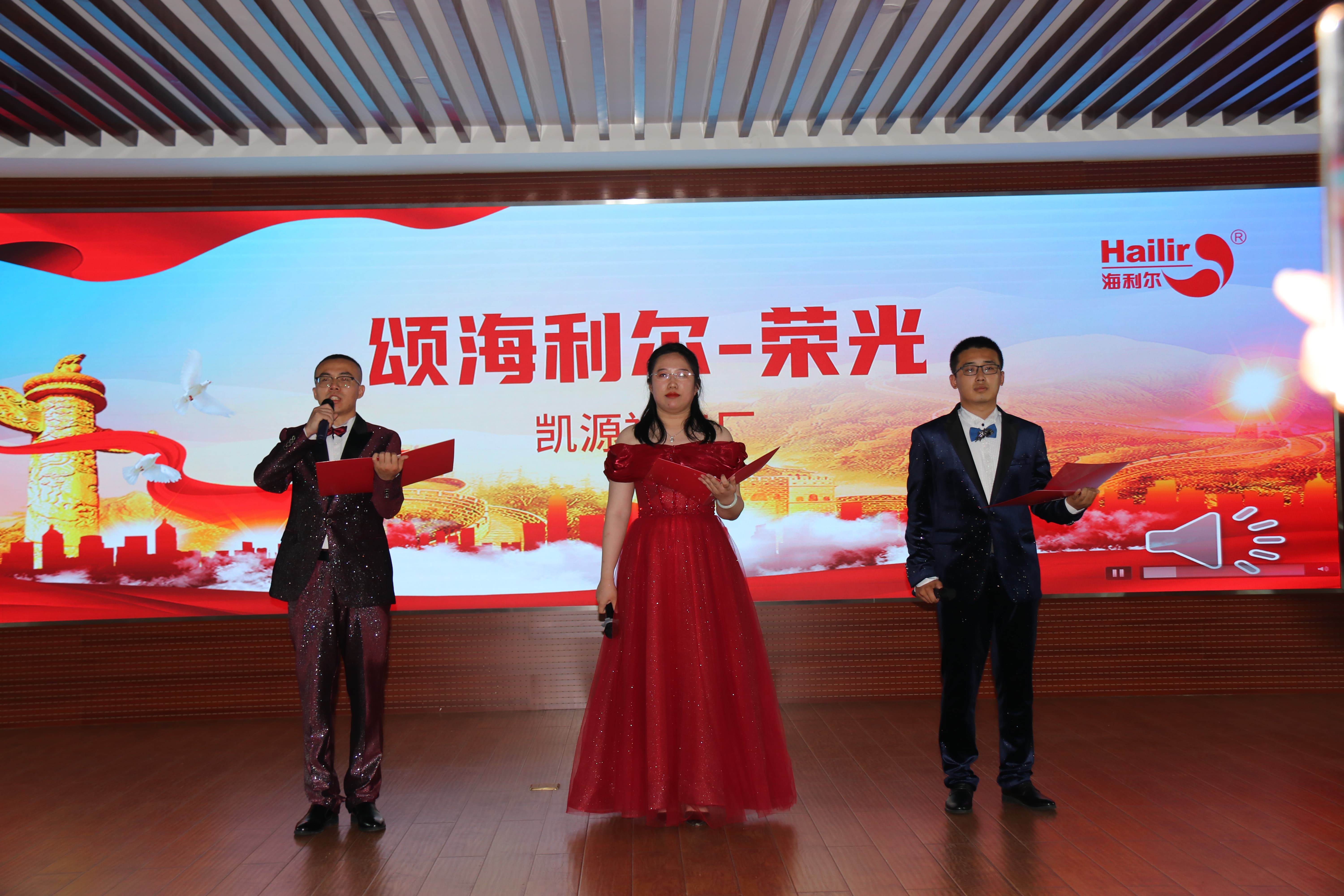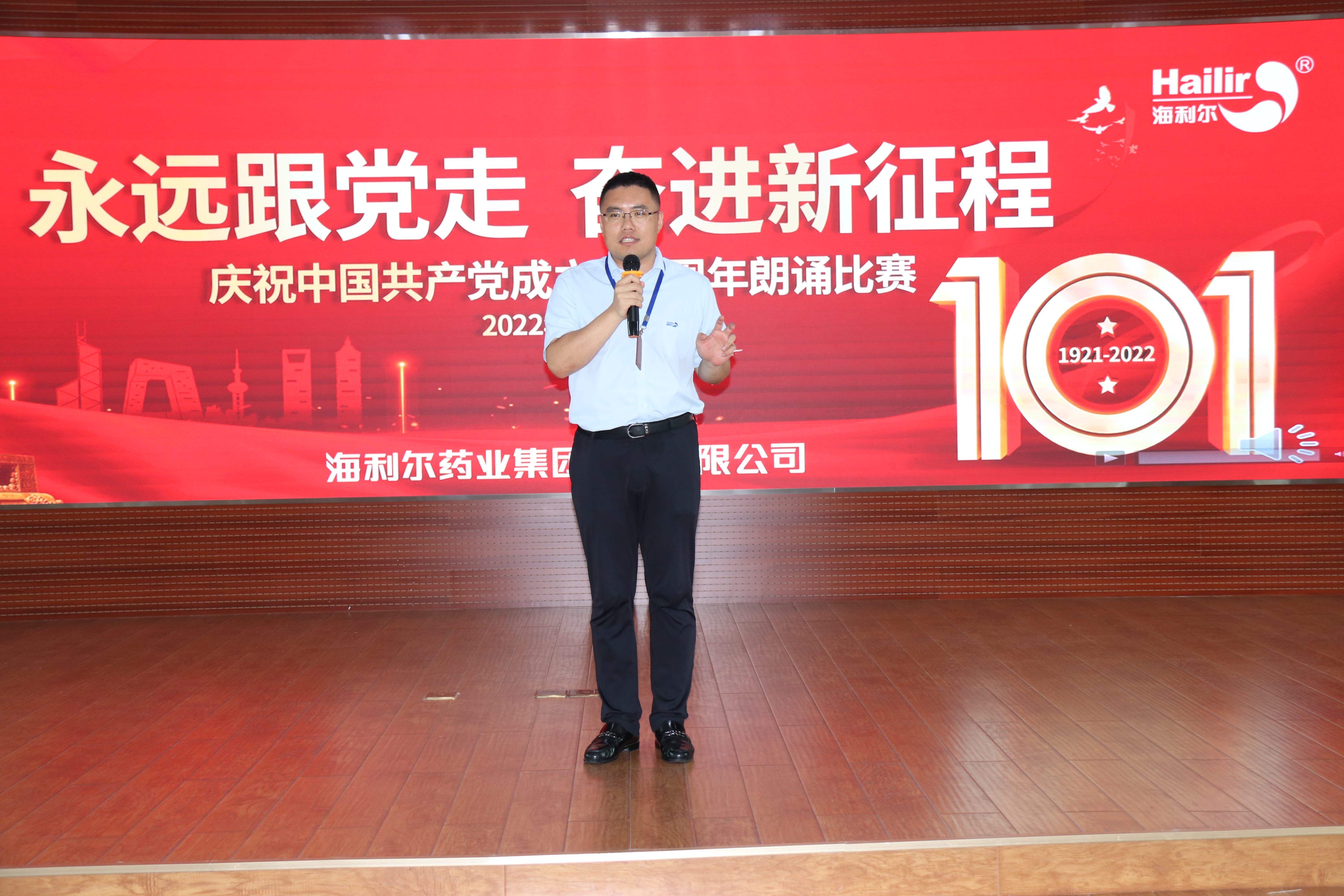 ? ? ? ?集團董事長葛堯倫、集團總裁葛家成、集團總工程師兼研發(fā)中心主任王良清、集團制劑生產(chǎn)總監(jiān)楊勇、集團人力資源總監(jiān)姜延紅、集團行政管理總監(jiān)譚長雁等領(lǐng)導出席活動并擔任評委。8個參賽單位(按出場順序)——山東海利爾工廠、國際業(yè)務(wù)中心、奧迪斯工廠、恒寧生物、青島海利爾工廠、滕潤翔、凱源祥工廠、研發(fā)中心一一登場,貢獻了一場場別開生面的朗誦表演。臺上朗讀者聲情并茂,初心激蕩;臺下觀眾席掌聲陣陣,同心飛揚。一場充滿激情與創(chuàng)意、對黨、對祖國、對海利爾愛的表白深情演繹。