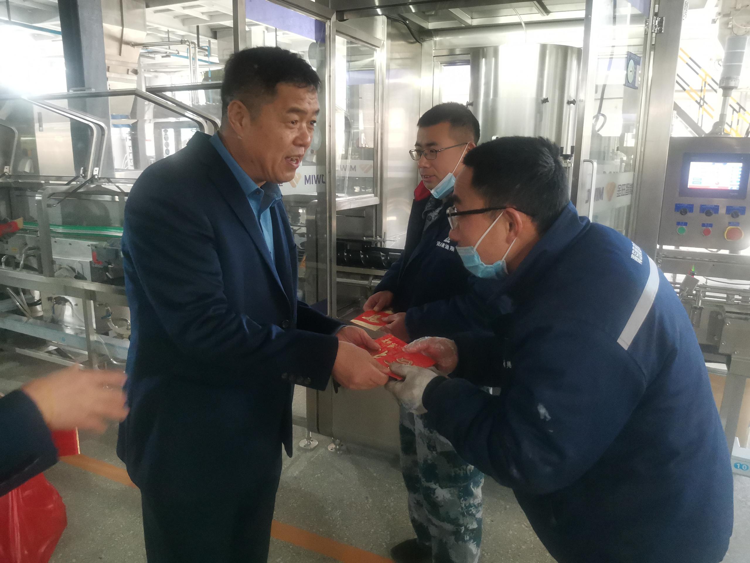 ? ? ? 2月12日大年初一一早,集團(tuán)總裁葛家成親自到工廠一線送祝福,致敬節(jié)日堅(jiān)守者,讓大家進(jìn)一步深切感受到這個(gè)新年不一樣的溫暖與關(guān)懷。