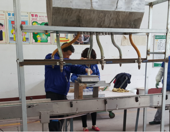 ?奧迪斯工廠顆粒劑生產(chǎn)任務(wù)重,重點(diǎn)產(chǎn)品、戰(zhàn)略產(chǎn)品瓶裝品規(guī)的顆粒劑全部都是傳統(tǒng)手工挖料,效率很低,而且需要多工序才能完成產(chǎn)品的生產(chǎn)(挖料、擰蓋、旋蓋、貼標(biāo)、噴防偽)生產(chǎn)效率根本沒法達(dá)到市場(chǎng)銷售的需求,趙廠長(zhǎng)與蘇廠長(zhǎng)針對(duì)此項(xiàng)工作專門進(jìn)行討論研究,如何進(jìn)行效率提升?要用設(shè)備代替?zhèn)鹘y(tǒng)手工,經(jīng)研究確定制作半自動(dòng)顆粒灌裝機(jī),最終確定方案由蘇廠長(zhǎng)親自現(xiàn)場(chǎng)跟進(jìn)加工實(shí)施: