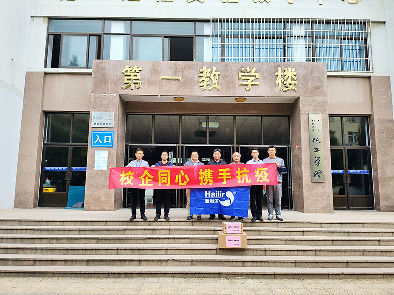 ????????下午3時,志愿者走進化工學院,受到學院王廣建教授、周欣然主席的熱情接待。接收到抗疫物資后,學院李院長對海利爾的慈行善舉大為贊賞,雙方在“校企同心 攜手抗疫”橫幅前合影留念。李院長表示,海利爾是青科大的好朋友、好伙伴,多年來一直保持合作,希望這種友誼長久保持下去,并責成學院耿老師、柳老師為海利爾各項活動選好人、服好務。