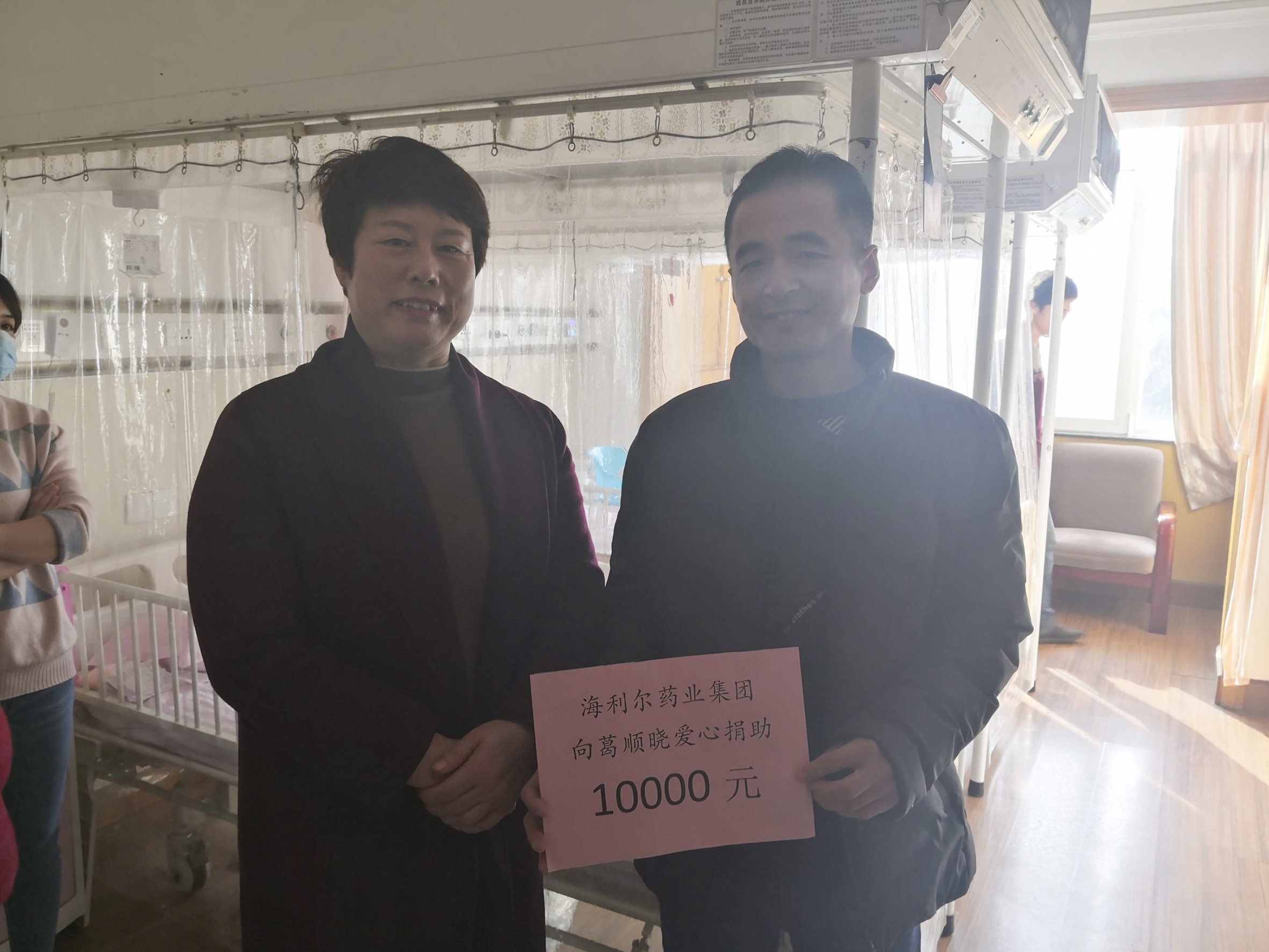12月24日,集團董事張愛英女士帶領(lǐng)公司工作人員赴青醫(yī)附院(市南區(qū))看望公司職工葛順濤的侄女(公司前職工葛順曉之女,患有重大疾病,導(dǎo)致家庭困難),張總在病房細(xì)致了解病情,親切慰問葛順曉及其家人,并代表公司向其捐助1萬元,張總還帶去了水果、點心等多種禮品,祝愿小寶貝早日康復(fù)。