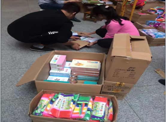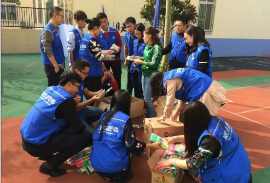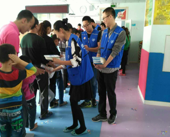???互動(dòng)游戲結(jié)束后,志愿者們給孩子們分發(fā)禮物: