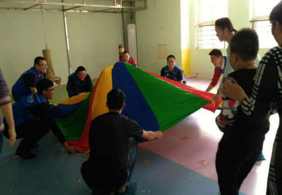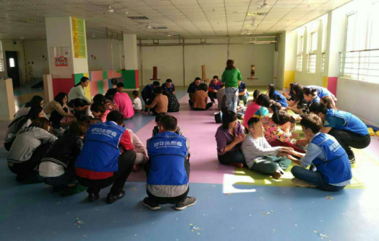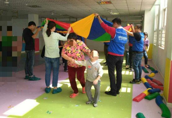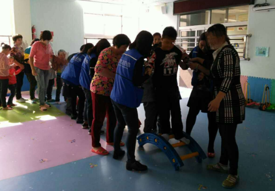 而后,在老師的指導(dǎo)下,志愿者們陸續(xù)開(kāi)始和孩子們互動(dòng)起來(lái),協(xié)助家長(zhǎng)一起做康復(fù)訓(xùn)練。到了孩子們的上課時(shí)間,志愿者們便一起做起了互動(dòng)游戲。盡自己的最大努力去跟孩子們溝通、互動(dòng),別無(wú)他求,只愿他們開(kāi)心、快樂(lè)!