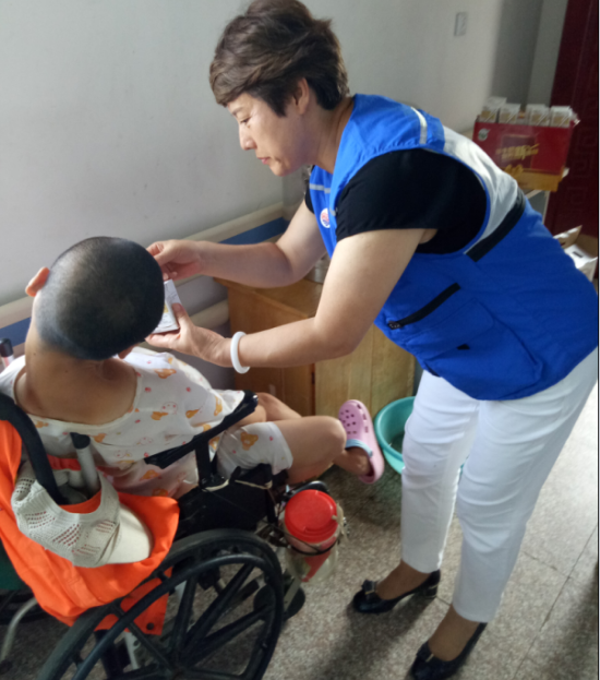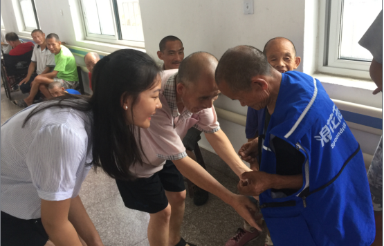 回想第一次來這里時他們的反應(yīng):見了生人無法掩飾的那種不安全感,和現(xiàn)在如家人般的情誼一比,心理不禁有些許的酸楚,他們雖然身殘但是也有著一顆火熱的心,渴望被關(guān)愛,希望被關(guān)心······