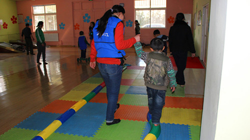 ? ? ? ?從穿上海利爾義工服的那一刻起,我們就覺得自己身上帶著一份很重的責(zé)任,用心與小朋友交流,用關(guān)愛去感化他們。進入康復(fù)訓(xùn)練大廳,就能感受到這群孩子的“不一樣”,每個孩子都是個人玩?zhèn)€人的,沒有溝通和交流,也沒有孩子在意我們的到來??吹竭@個場景,我們都感到很心疼。我們漸漸地融入他們,整個下午我們一直在努力與他們玩游戲,幫助他們做康復(fù)訓(xùn)練。我們每個人都很耐心的跟他們玩在一起。他們對我們笑了,我們就很開心,他們跟我們講話了,我們就很滿足。