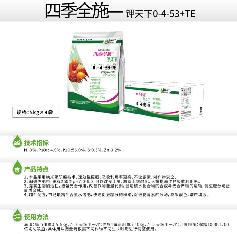 產(chǎn)品名稱(chēng) 四季全施—鉀天下0-4-53+TE