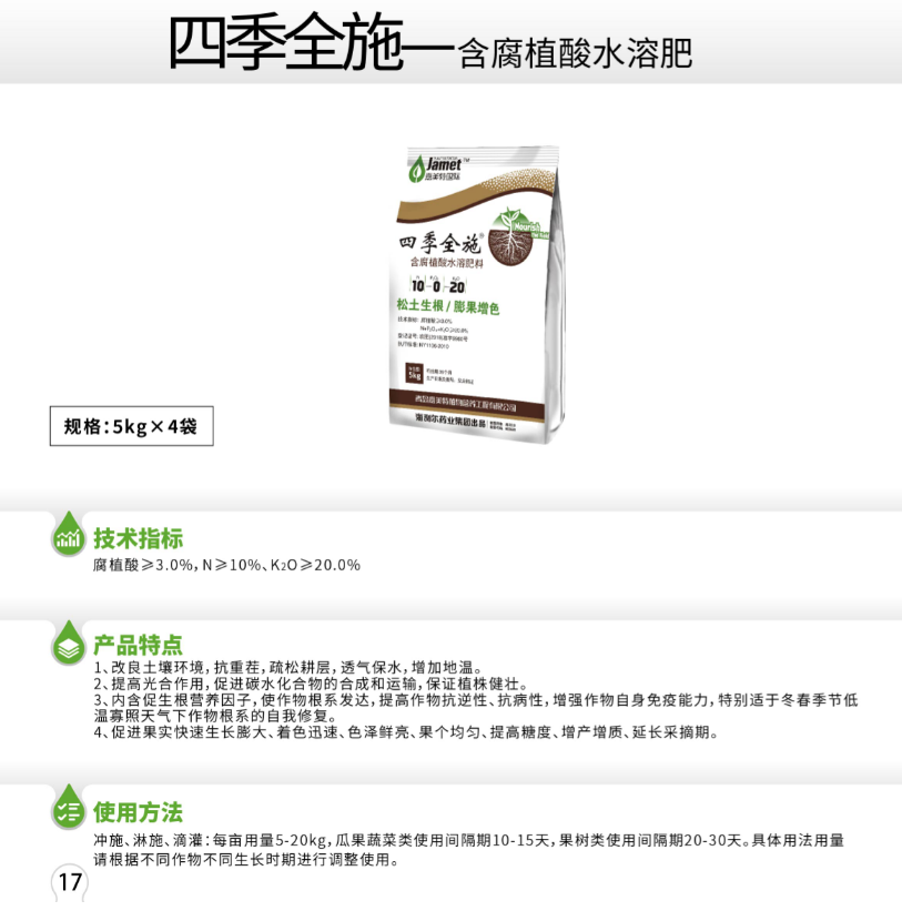 產(chǎn)品名稱 四季全施—含腐植酸水溶肥