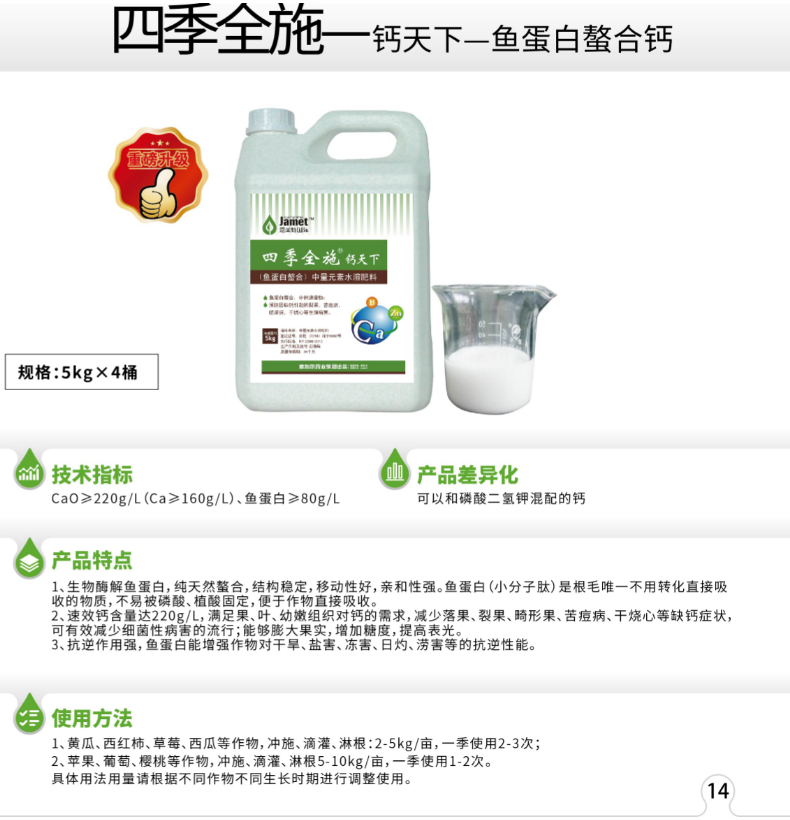 產(chǎn)品名稱 四季全施—鈣天下-魚蛋白螯合鈣